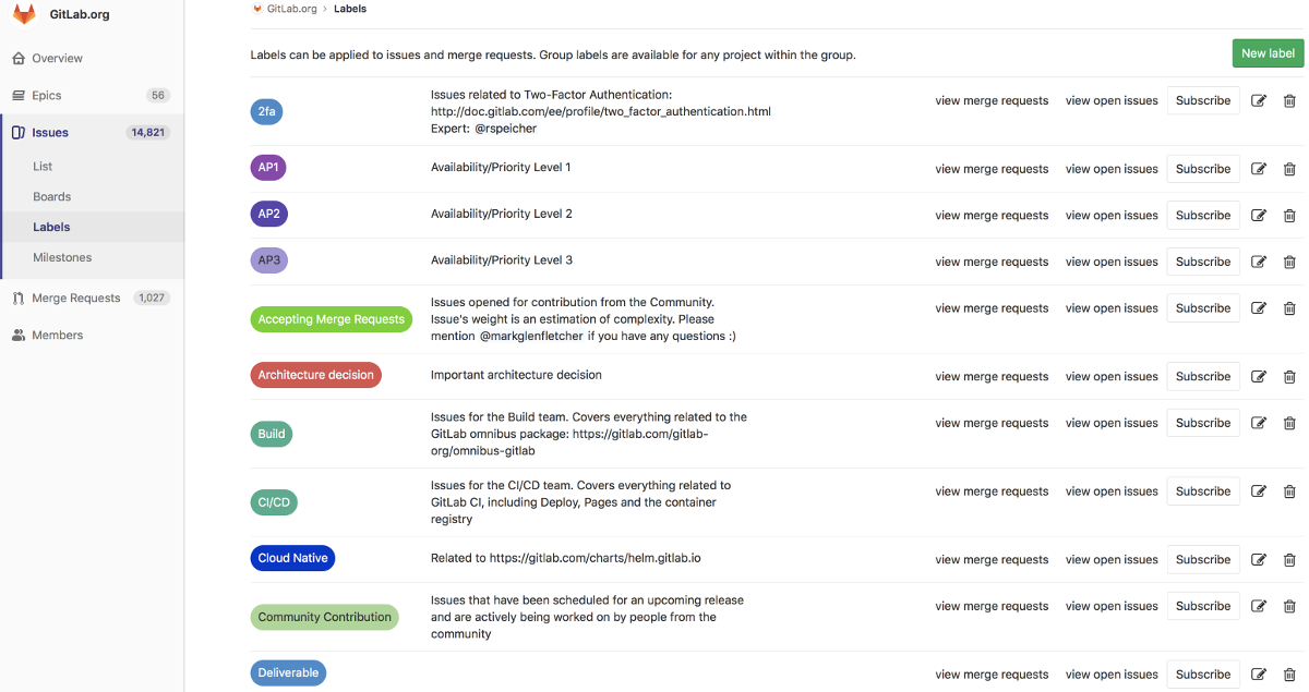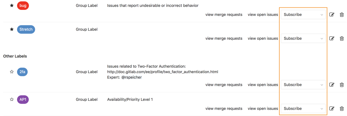 - Group labels can be assigned to any issue or merge request of any project in that group.