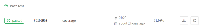 If you would like to get the coverage report from a specific job, you can add the job=coverage_job_name parameter to the URL. For example, the following Markdown code will embed the test coverage report badge of the coverage job into your README.md: